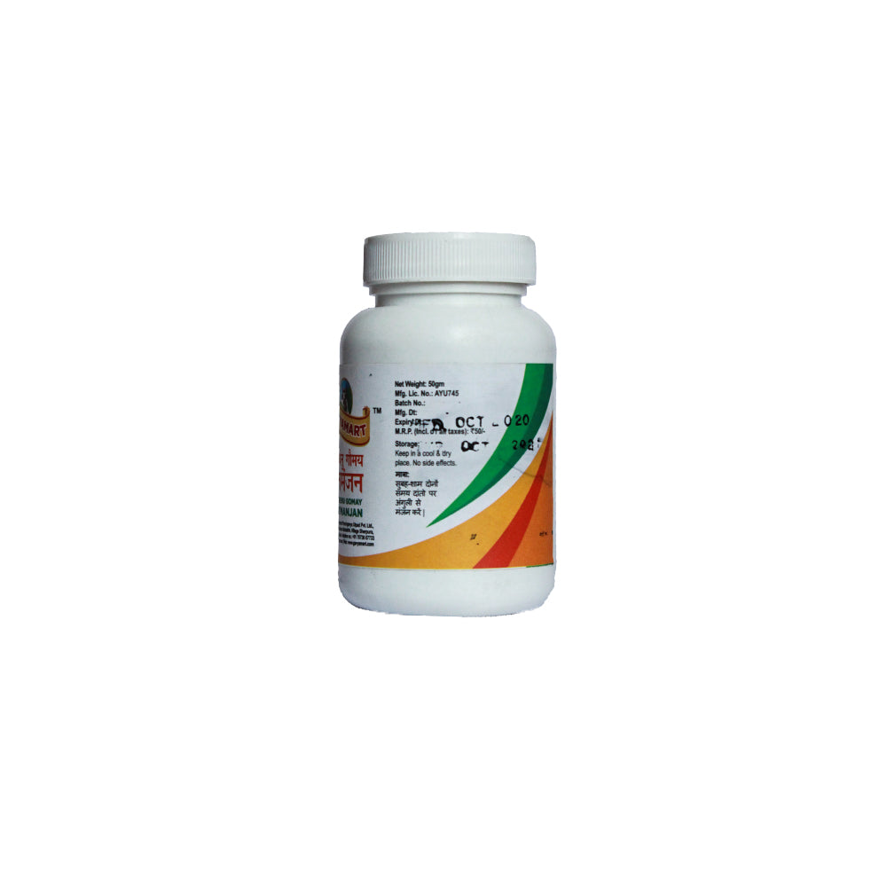 Pathmeda Dant Manjan is an exclusive Ayurvedic tooth powder designed to promote white, strong teeth and healthy gums. This unique formulation addresses various dental issues, including pyorrhea, gingivitis, and bad breath, when used daily.
