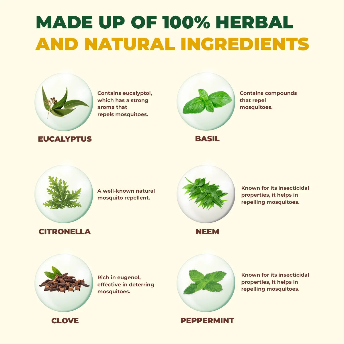 Herbal Mosquito Repellent  is made from natural ingredients, providing an effective way to keep mosquitoes at bay without harmful chemicals. It offers long-lasting protection while being safe for the skin, making it ideal for the whole family.