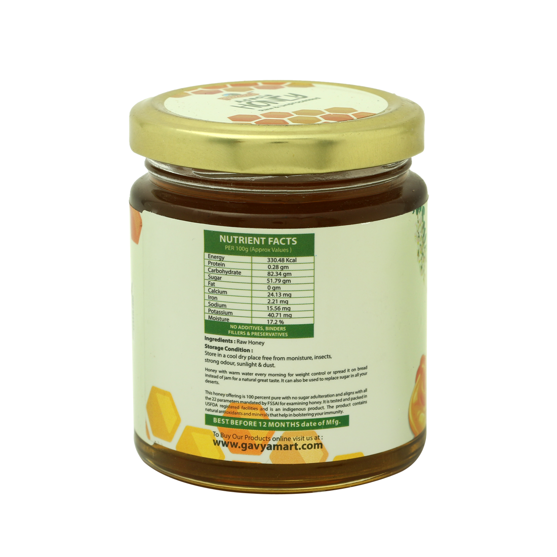 At gavyamart, we do not heat our honey. After harvesting honey, we do a simple straining of the harvested honey through a cloth or mesh. We filter it 3 times resulting in clear viscous honey free from wax particles. if there is small wax part or pollen which can pass through cloth mesh completely natural and safe to consume. It is neither artificially flavoured or coloured. It is procured through our own beekeeping team. This product contains no additives, is free from artificial preservatives, synthetic fillers or binders.