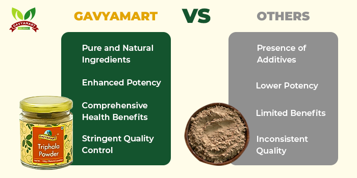 Gavyamart Triphala Churn is a traditional Ayurvedic herbal blend made from three powerful fruits: Amla, Bibhitaki, and Haritaki. It supports digestion, detoxifies the body, and boosts overall health, making it a versatile addition to your wellness routine.