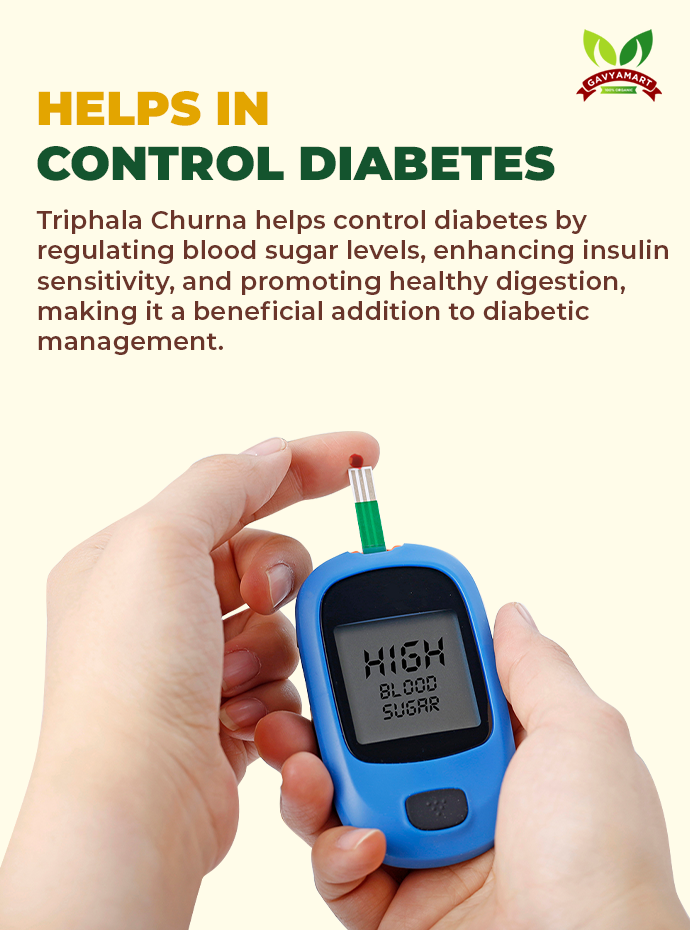Triphala churna supports digestive health, detoxification, and boosts immunity with its antioxidant and anti-inflammatory properties.